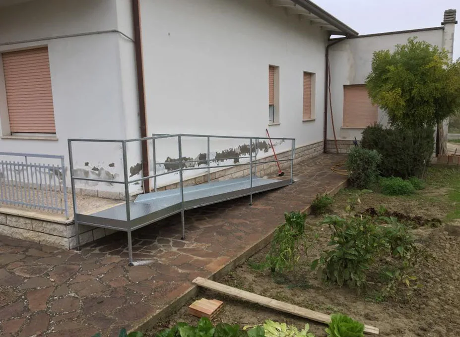 Per il superamento delle barriere architettoniche realizziamo pedane in ferro e alluminio, complete di eventuali ringhiere e corrimani per garantire una salita e una discesa sicure alle carrozzine. Le pedane sono realizzate su misura, con superfici antiscivolo, robuste e funzionali, ideali sia per ambienti interni che esterni.